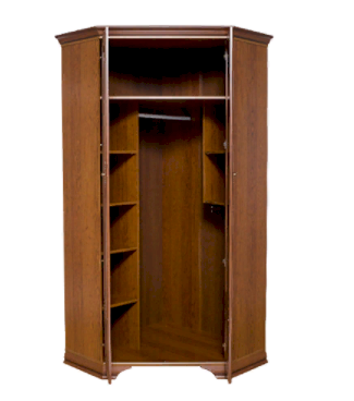 Высокий и компактный угловой шкаф Кентаки – мебель, позволяющая организовать комфортную систему хранения гардероба даже в самом небольшом пространстве. Она незаменима в прихожих, небольших гостиных или спальнях. Выполненная в классическом стиле, мебель универсальна – она будет гармонично смотреться в любом интерьере, дополняя его собой.