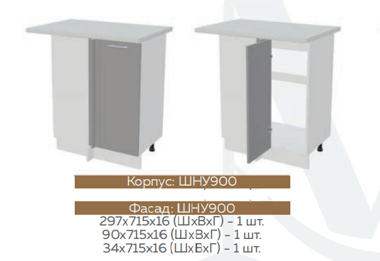 ШНУ900 Шкаф нижний угловой Графит софт/Белый глянец холодный