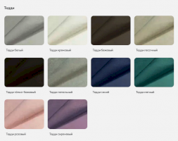 | Цвет | БЕЖЕВЫЙ / БЕЛЫЙ / ГОЛУБОЙ / ЖЕЛТЫЙ / ЗЕЛЕНЫЙ / КОРИЧНЕВЫЙ / ОРАНЖЕВЫЙ / РОЗОВЫЙ / СЕРЫЙ / СИНИЙ / СИРЕНЕВЫЙ / ЧЕРНЫЙ / КОФЕ |