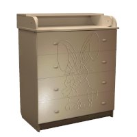 Вам понравится привлекательный внешний вид детского комода. На его лицевой части вы увидите углубленный декор в виде зайца с бантом.