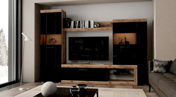 Дуб делано/Черный глянец