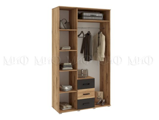 Шкаф 3-х створчатый Графит/Дуб крафт