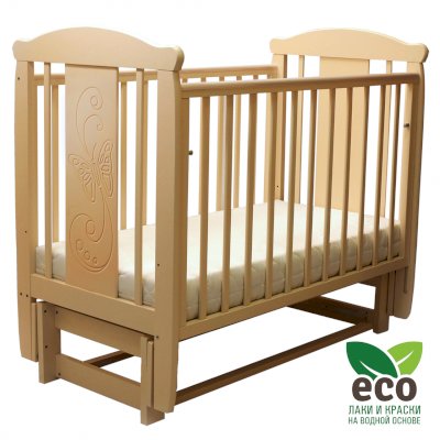 Кроватка "Соня 05" имеет механизм качания продольный маятник. Механизм качания фиксируется. Возможен вариант кровати с ящиком.