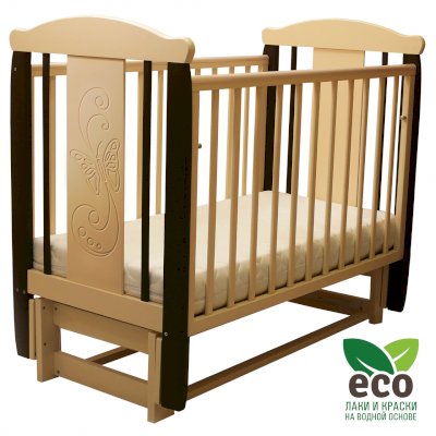 Детская кроватка с продольным маятником Соня 05 с декором Бабочка (Соня)