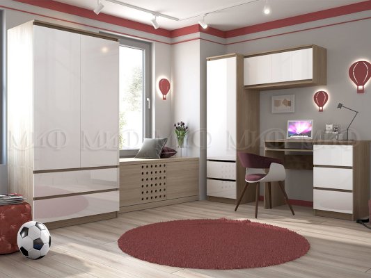 Модульная детская Челси Дуб Сонома/Белый глянец (Миф)