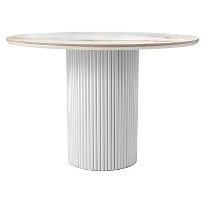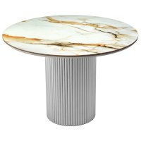 Стильный нераздвижной стол Aura – идеальное сочетание элегантности и функциональности. Стол Aura обладает глянцевой премиальной круглой столешницей из керамики, имитирующей белый мрамор, диаметром 110 см.