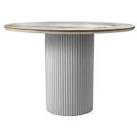 Элегантная круглая опора: металлическая основа белого цвета придает столу стабильность и стильный современный вид, идеально гармонируя с мраморной столешницей.