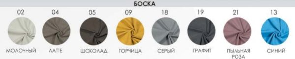 Обивка: Ткань (Велюр Боска), Ткань (Велюр Nova), Ткань (Велюр Grand)