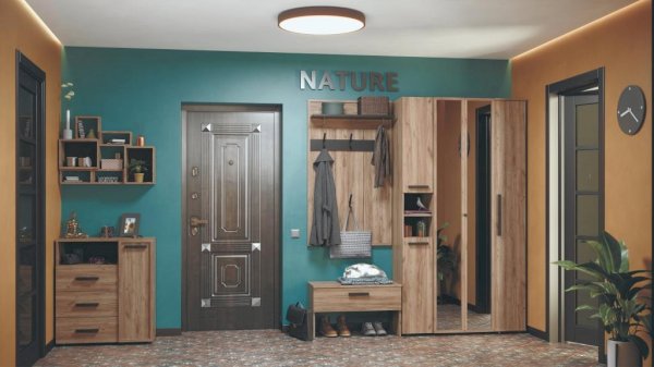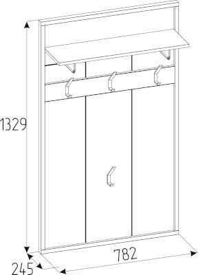 Настенная вешалка поможет использовать пространство прихожей экономно и рационально. Панель оснащена полкой для головных уборов и крючками для верхней одежды и сумок. Верхняя полка глубиной 229 мм крепится с помощью Г-образного полкодержателя. Каждый металлический крючок для одежды выдерживает нагрузку до 5 кг. Детали из черного ЛДСП поддерживают стилистику всей коллекции и подчеркивают выразительность текстуры декора Дуб Табачный с его характерными для благородной древесины крупными трещинами и сучками.