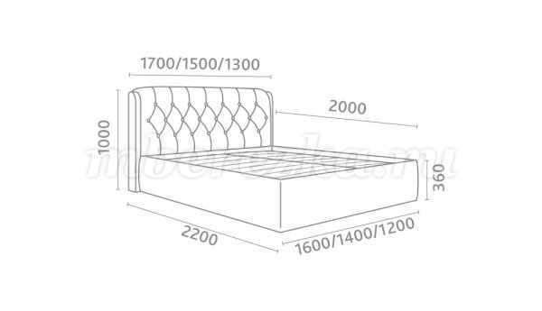 Кровать доступна в 3-х размерах: 1200, 1400 и 1600 мм.