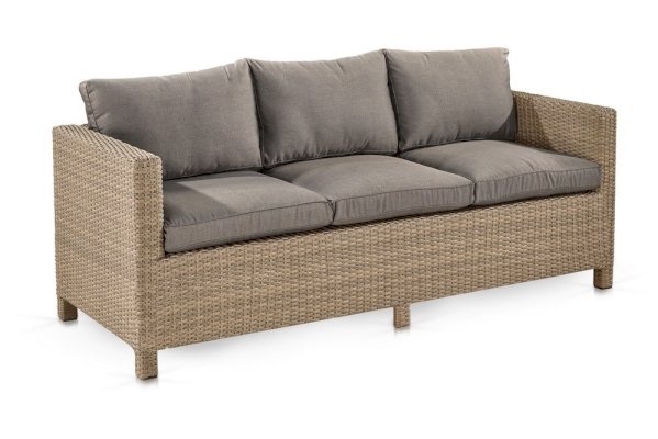 Обеденный комплект плетеной мебели предоставит отличное место для отдыха всей семьи. Столешница из ударопрочного и безопасного закаленного стекла имеет бронзовый оттенок. А диваны с подлокотниками делают комплект более комфортным и удобным.