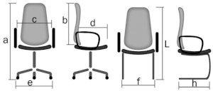 вариант исполнения а.высота b.спинка c.ширина d.глубина e.диаметр крест. L.высота f.ширина h.глубина