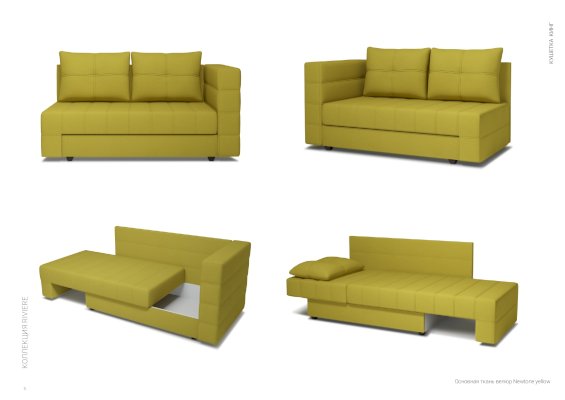 Наличие универсального направления трансформации механизма позволяет в любой момент изменить внешний вид кушетки.