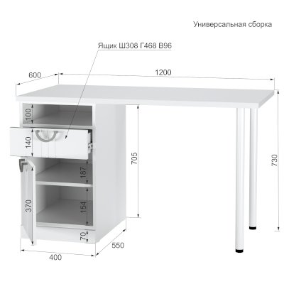 | Конструкция | полки / ящики для хранения |