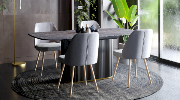 Столешница со скошенной кромкой позволит придать столу визуальную лёгкость, но при этом не потерять высокие показатели прочности столешницы. Текстура мрамора в белом или черном цвете с золотой кромкой выглядит статусно, прекрасно подойдет к любому стилю оформления, а покрытие софт тач создаст приятные тактильные ощущения во время использования стола.